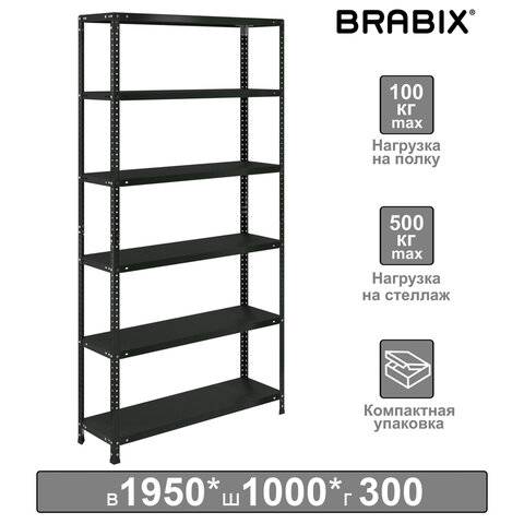 Стеллаж металлический "MS 220/30-6", 2200*1000*300 мм, 6 полок, 291373