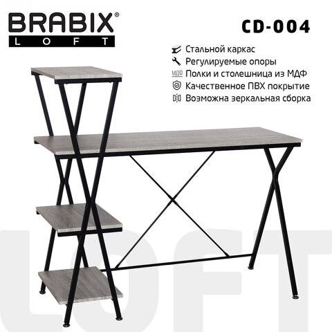 • Стол на металлокаркасе BRABIX LOFT CD-004, 1200х535х1110 мм, 3 полки, цвет дуб антик, 641219